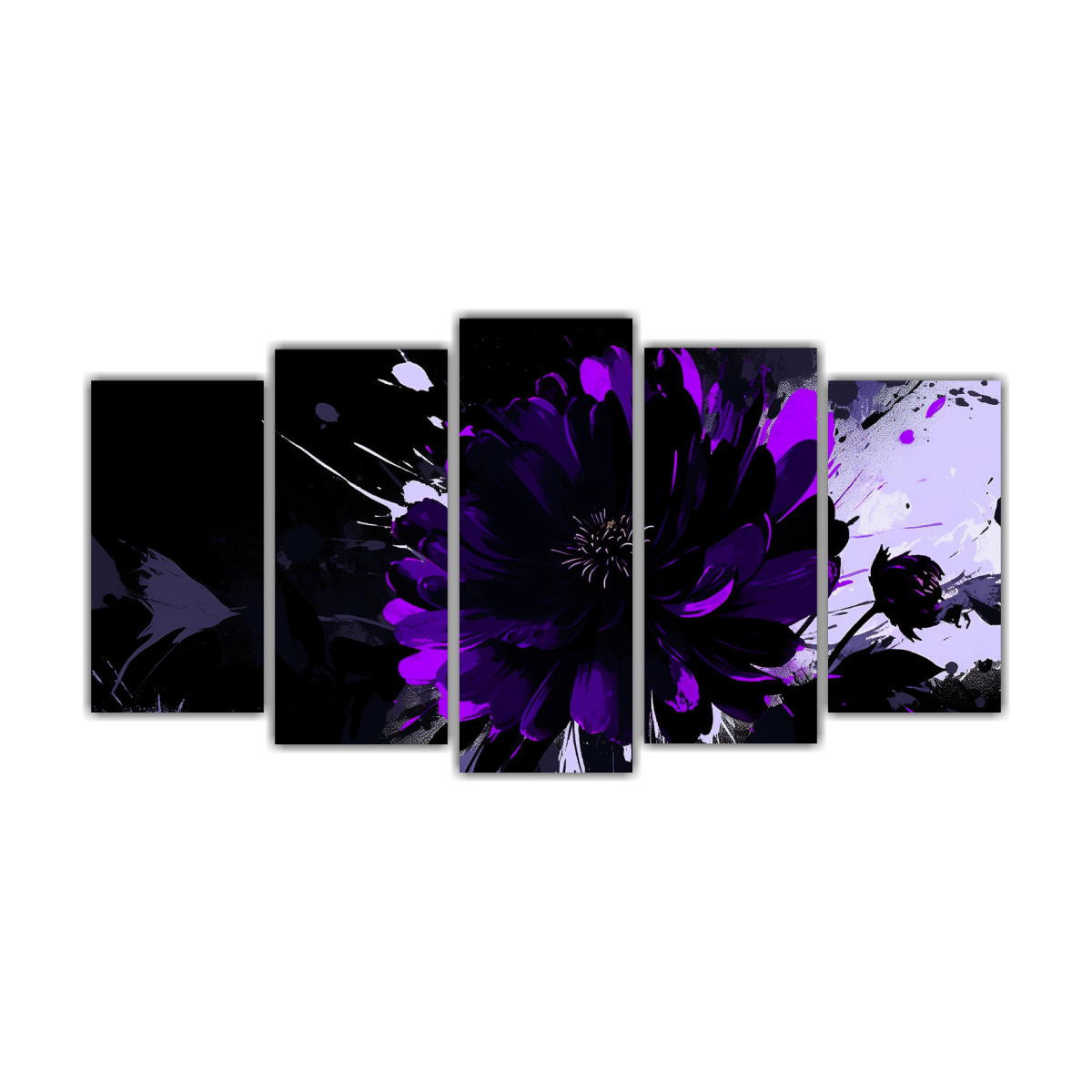 Pinturas Decorativas En Estilo Neonoir Con Atmósfera Calidoscópica Púrpura Y Negra