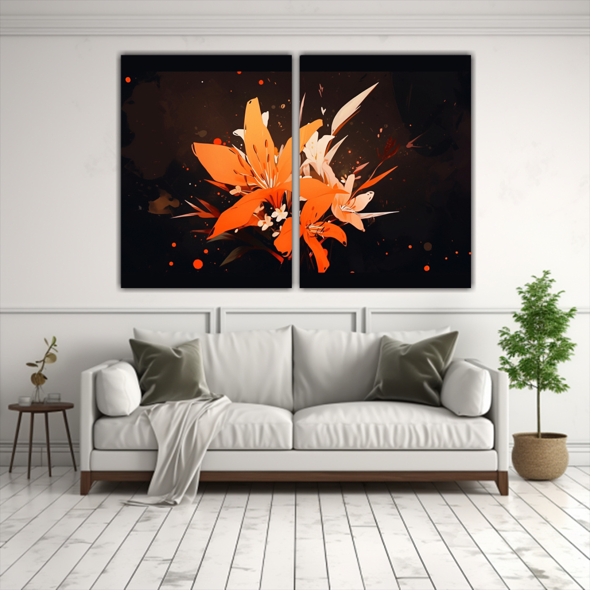Coloca este conjunto de cuadros en tonos naranjas en tu sala de estar para crear un ambiente acogedor y elegante Combínalos con muebles en tonos neutros para resaltar su belleza y estilo único