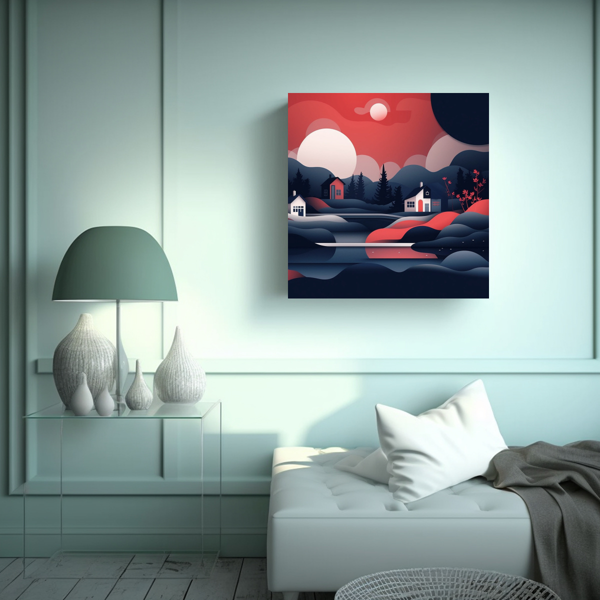 Pinturas Decorativas En Lienzo Animadas Con Una Composición De Tonos Ricos En Visualidad En Azul Marino Oscuro Y Rojo Residencial