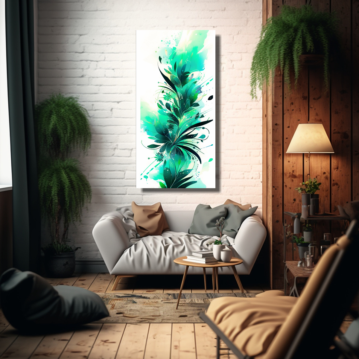 Coloca este cuadro Arte Tela Equilibrio verde y turquesa en tu sala de estar para crear una atmósfera relajante y sofisticada Combínalo con muebles de tonos neutros y elementos decorativos en colores plateado y gris para resaltar los tonos de la pintura ¡Transforma tu espacio en un ambiente moderno y lleno de estilo con este cuadro de DecoCuadros!