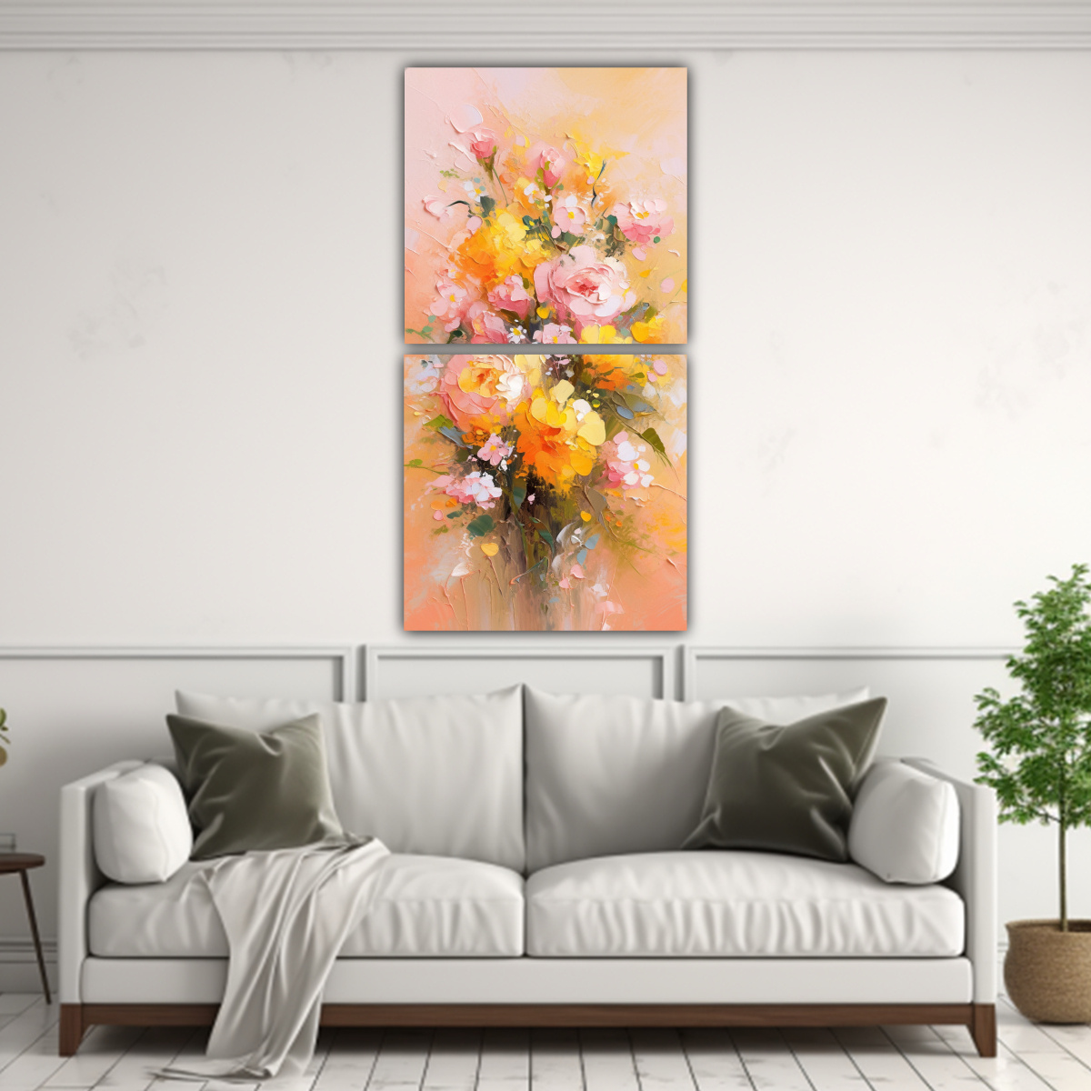 Pinturas Decorativas En Lienzo Con Flores Amarillas Y Rosas En Forma De Profundidad Set 2