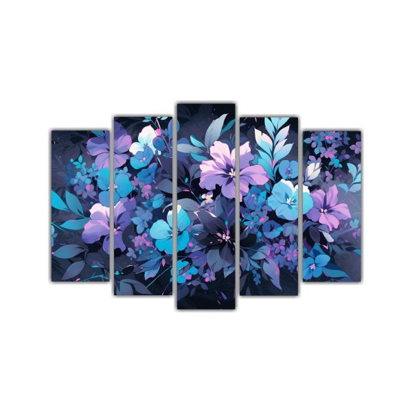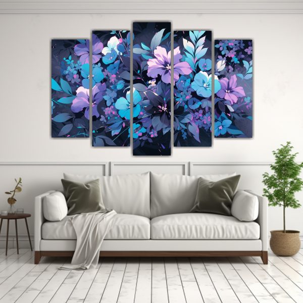 Pinturas Decorativas En Lienzo De Alta Calidad En Tonos Púrpura Y Turquesa Con Atmósfera Neonoir
