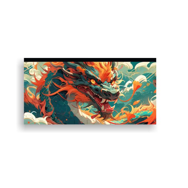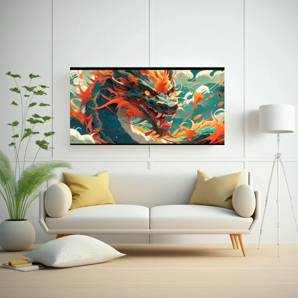 Pinturas Decorativas En Lienzo: Dragón Turquesa Y Naranja, Atmósfera Neonoir.