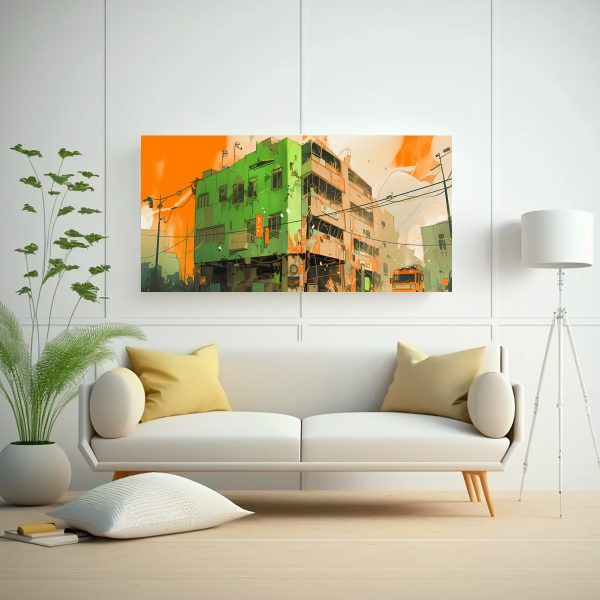 Este cuadro en Verde y Naranja se vería espectacular en el salón principal de tu hogar, creando un ambiente vibrante y moderno Combínalo con muebles de tonos neutros para resaltar su belleza