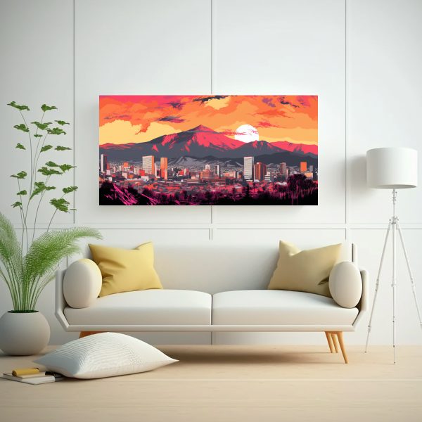 Este cuadro en tonos naranja y rosa es perfecto para dar vida a un ambiente neutro, como un salón o una oficina Combínalo con muebles en tonos grises y blancos para lograr un contraste elegante y moderno Colócalo en una pared principal para que sea el centro de atención de la habitación