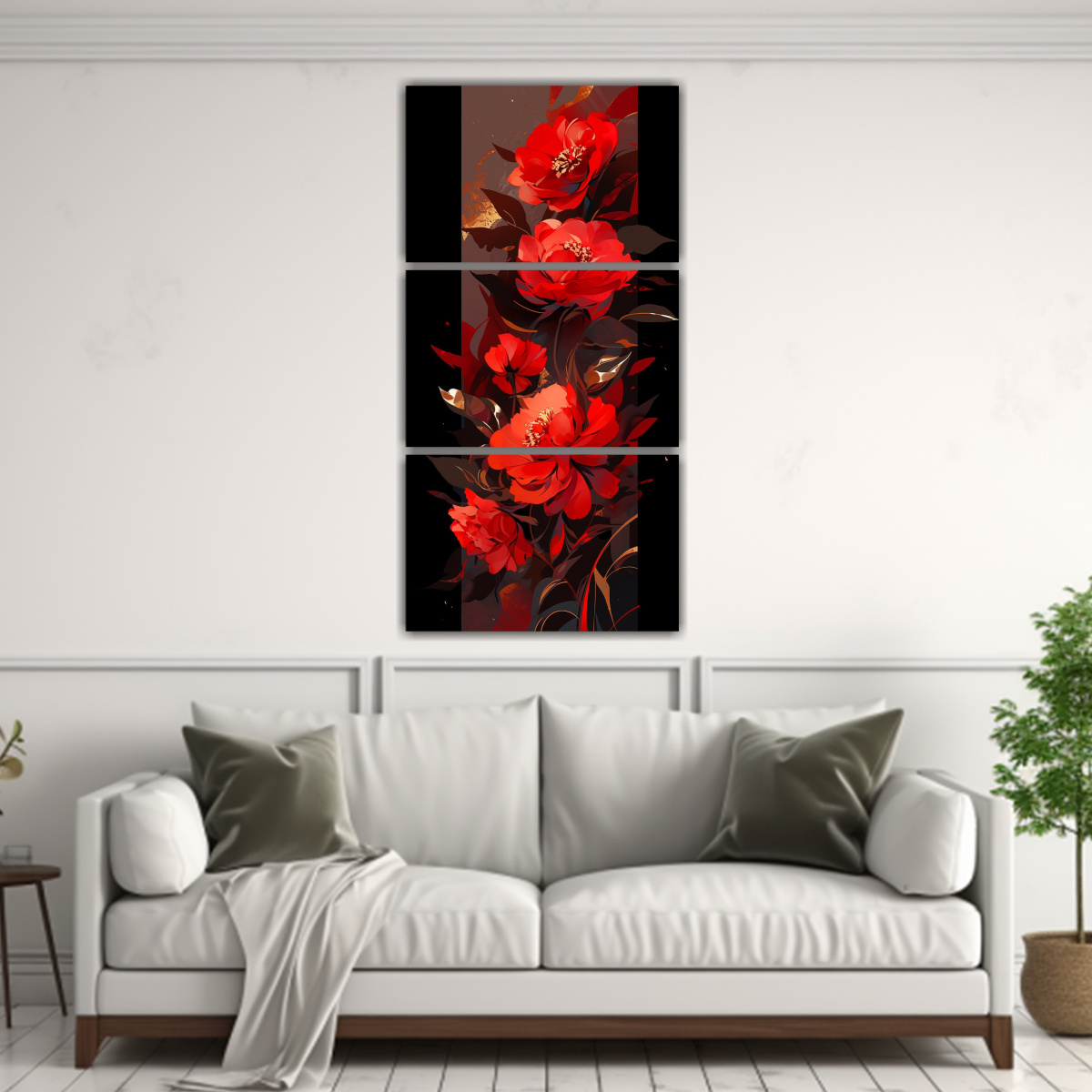 Este cuadro en rojo y dorado con ambiente neonoir luciría espectacular en tu sala de estar, sobre un sofá en tonos neutros para resaltar su intensidad Combínalo con cojines en gris y negro para lograr un efecto moderno y sofisticado