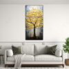 DecoCuadros ofrece pinturas decorativas en tonos dorados y amarillos de un árbol en el escenario en tres composiciones Descubre nuestros diseños exclusivos y la mejor calidad del mercado