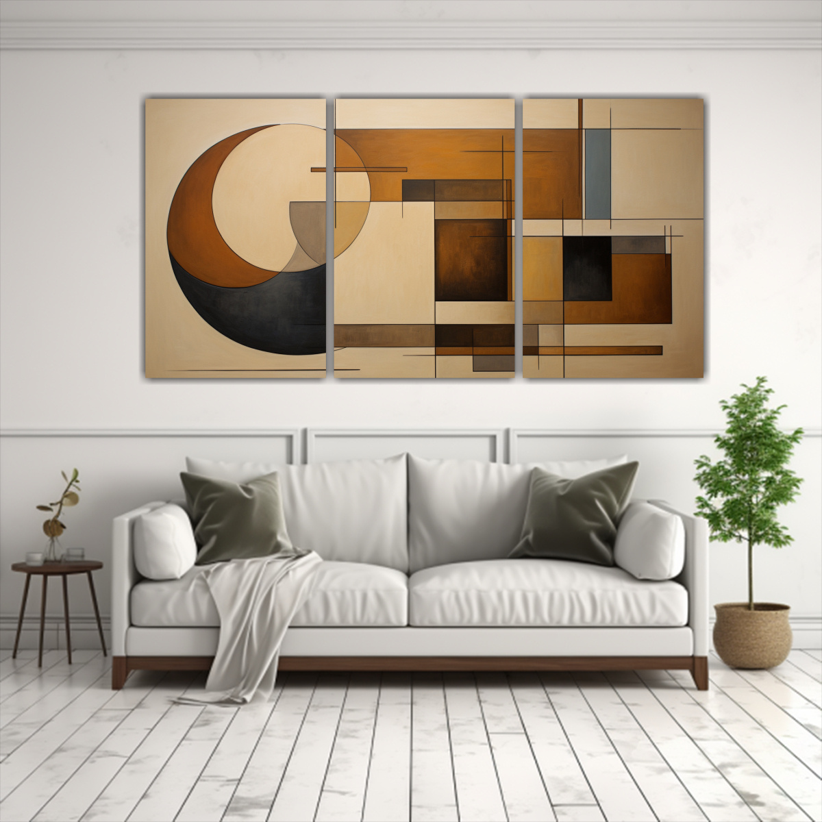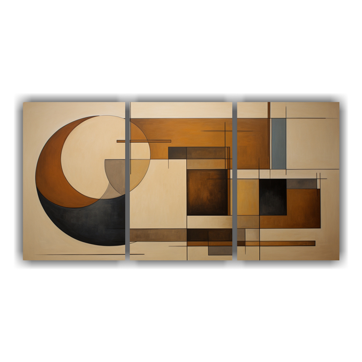 Decora tus espacios con los Tres Lienzos De Tela Tonos Pop Art Geometric abstraction en gris, chocolate, azul marino grisaceo, dorado y plateado Diseños exclusivos, alta calidad y precios económicos Envío gratis en Santiago y rápido a regiones