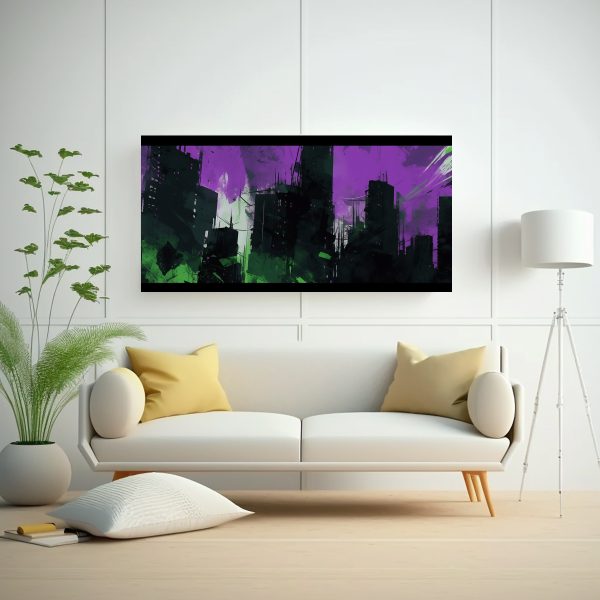 Coloca este cuadro decorativo en verde y morado en tu sala de estar para darle un toque de color y modernidad Combínalo con muebles en tonos neutros para resaltar su belleza y crear un ambiente equilibrado y sofisticado ¡Atrévete a experimentar con la decoración y sorprende a tus invitados!