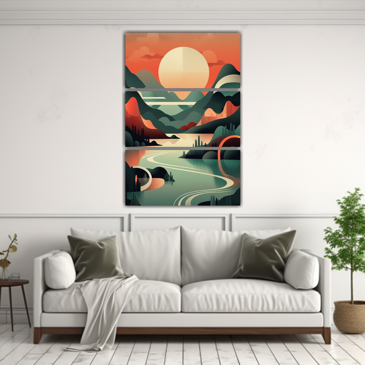 Coloca este hermoso cuadro escandinavo en tu sala de estar para crear un ambiente relajante y moderno Combínalo con muebles en tonos neutros y utiliza cojines y cortinas en colores similares para lograr una decoración armoniosa