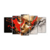 Pinturas Decorativas Espectaculares Con Contornos Faciales Y Salpicaduras En Oro Y Azul En Un Juego De 5 Telas.
