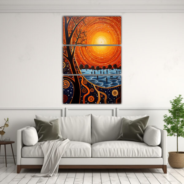 Decora tu espacio con el cuadro ‘Pinturas decorativas estilo arte aborigen en tres colores bonitos’ Disponible en negro, plateado, carmesí, chocolate, dorado, coral y gris Impreso en tela de alta calidad con bastidores de madera Diseños exclusivos de nuestra tienda Entrega rápida y envíos express a regiones