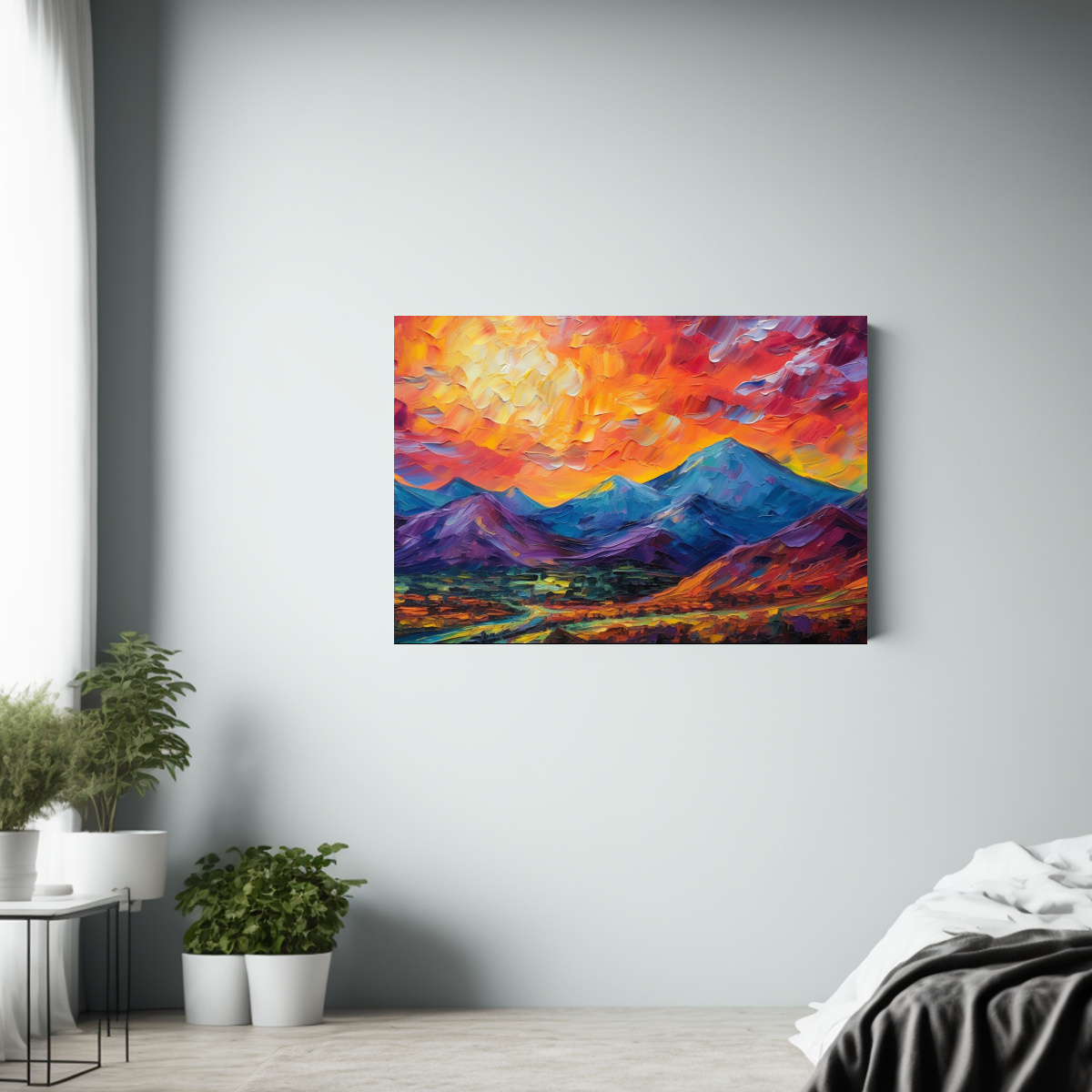Coloca este cuadro en tu sala de estar para darle un toque moderno y colorido Combina con muebles en tonos neutros para resaltar la paleta de colores vibrantes del cuadro ¡Crea un ambiente fresco y contemporáneo!
