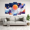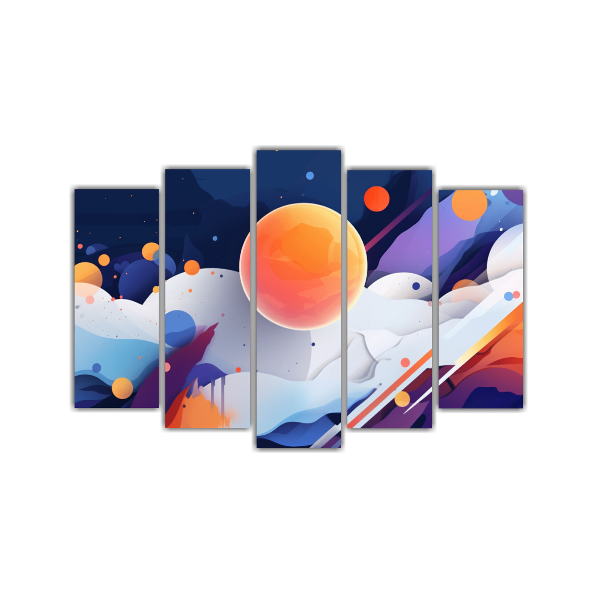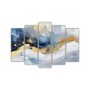 Coloca el Cuadro Cinco Lienzos Movimiento Calma en el centro de tu sala de estar sobre un sofá beige para resaltar los tonos de la obra y crear un punto focal elegante Combínalo con cojines en tonos coral y violeta para una decoración sofisticada