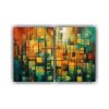 Este cuadro Diptico Movimiento Vitalidad quedaría espectacular en una pared blanca junto a muebles en tonos neutros para resaltar su vibrante paleta de colores Crea un ambiente moderno y lleno de energía en tu sala de estar o estudio