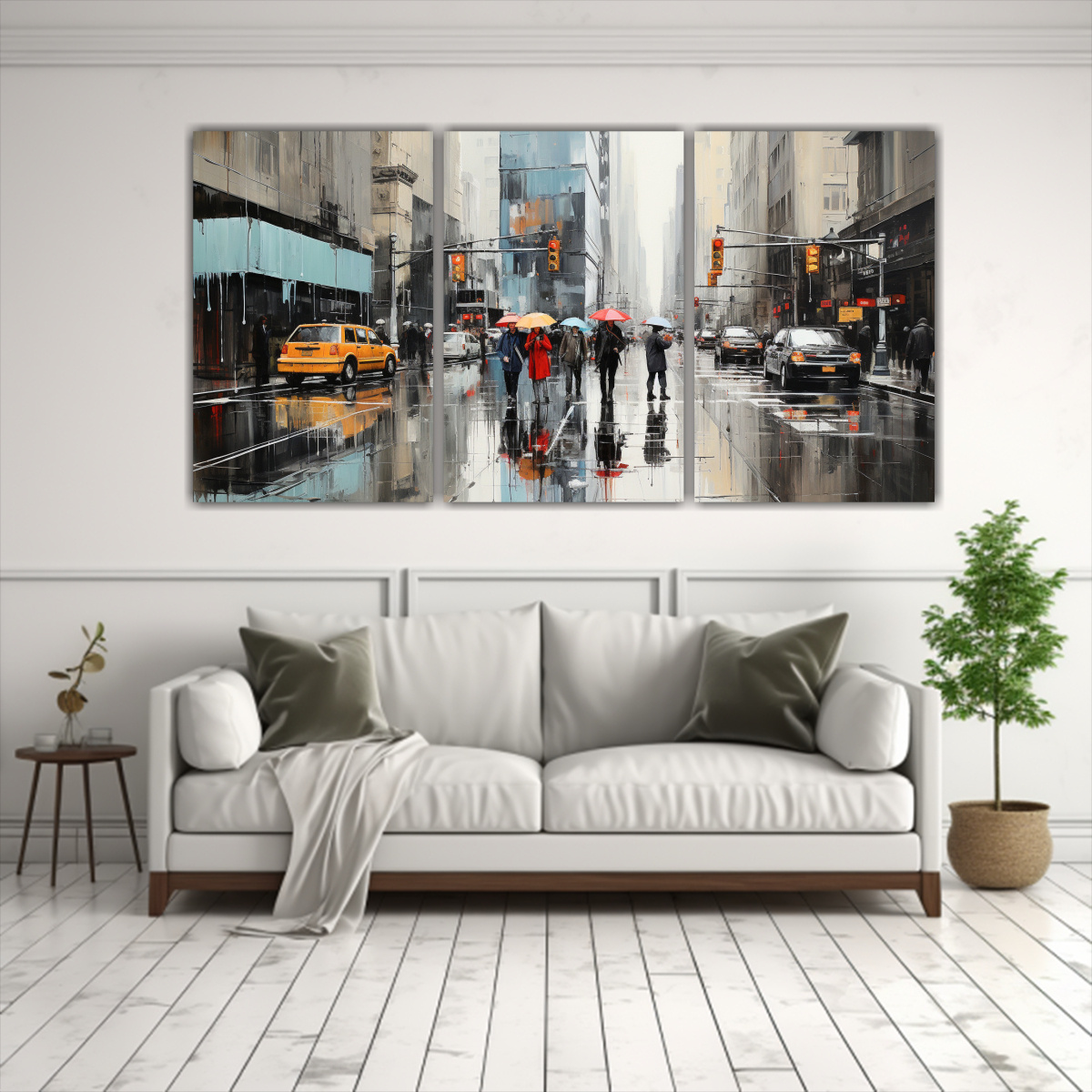 Coloca este tríptico en tu sala de estar sobre un sofá gris para resaltar las tonalidades azules y grises del cuadro Combínalo con cojines dorados y plateados para agregar un toque de glamour El resultado será una decoración moderna y sofisticada que impresionará a tus invitados