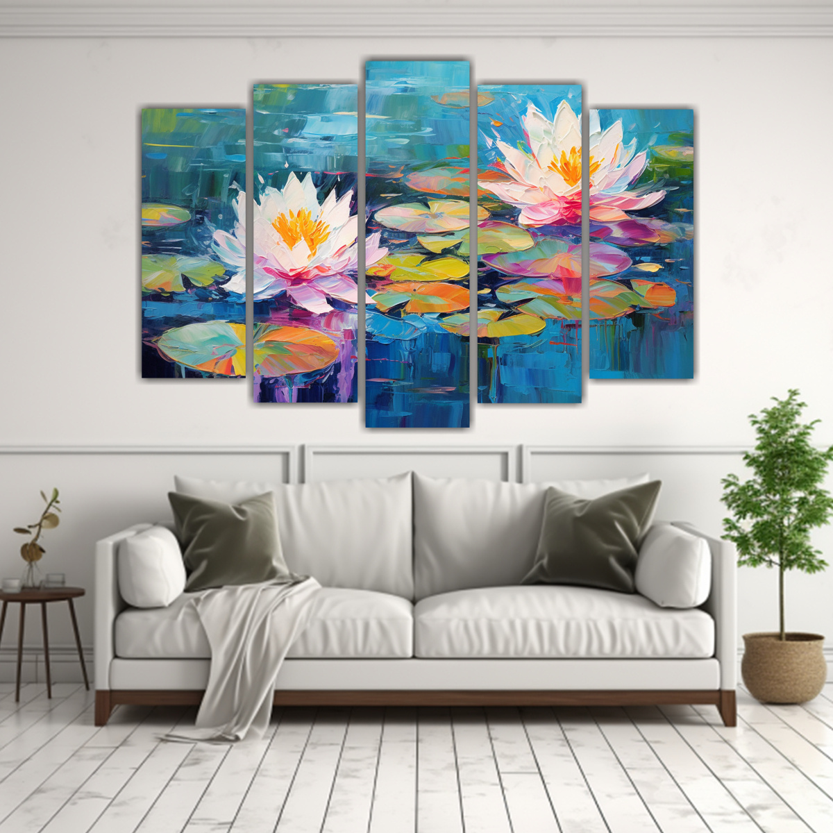 Este conjunto de 5 telas en bastidor estilo Lily Pulitzer es ideal para crear un punto focal en tu sala de estar Colócalo sobre un sofá neutro para darle vida a la habitación y combínalo con cojines en tonos turquesa y mostaza para un ambiente vibrante y sofisticado