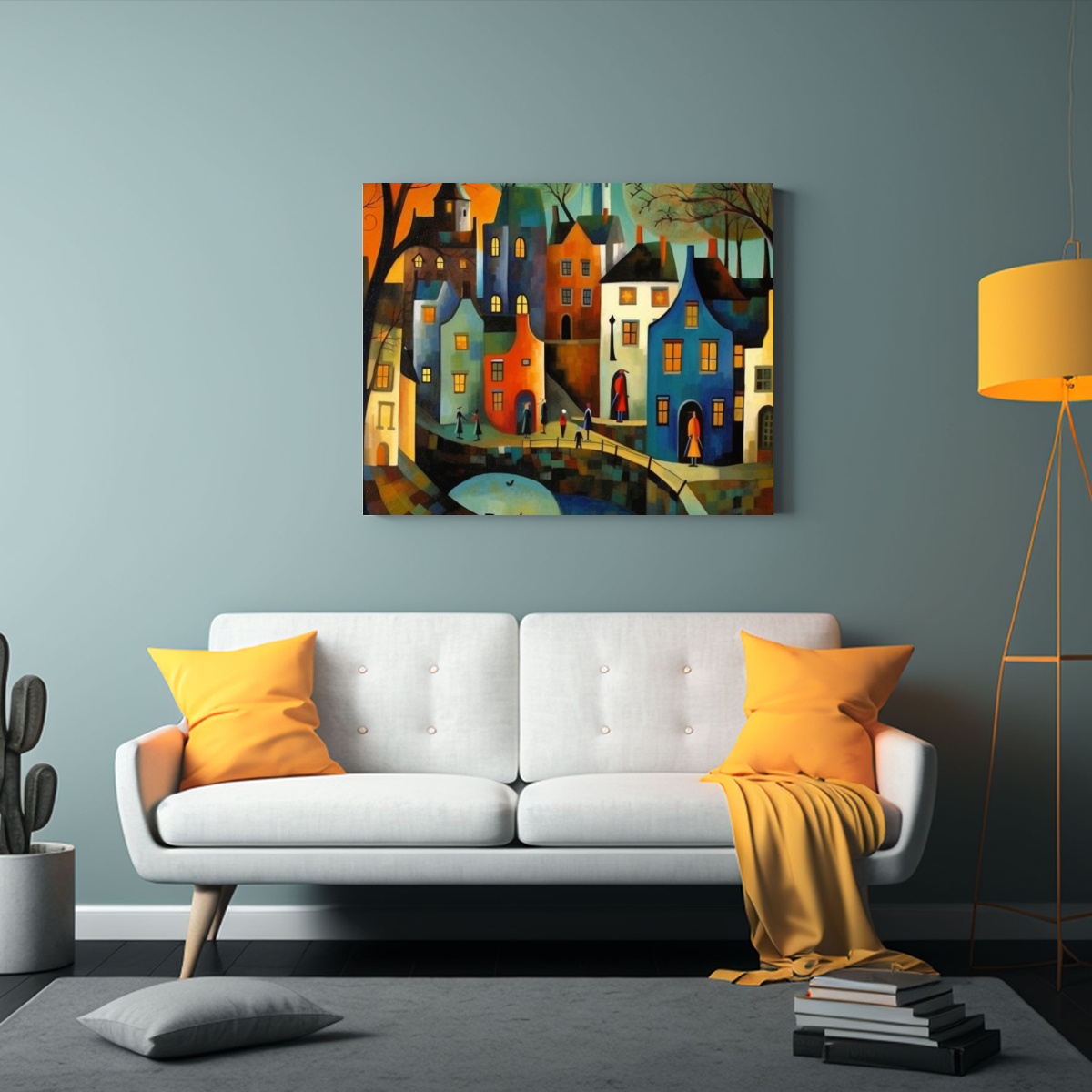 Pinturas Decorativas Estilo Medieval De Pueblos Cálidos En Relieve.