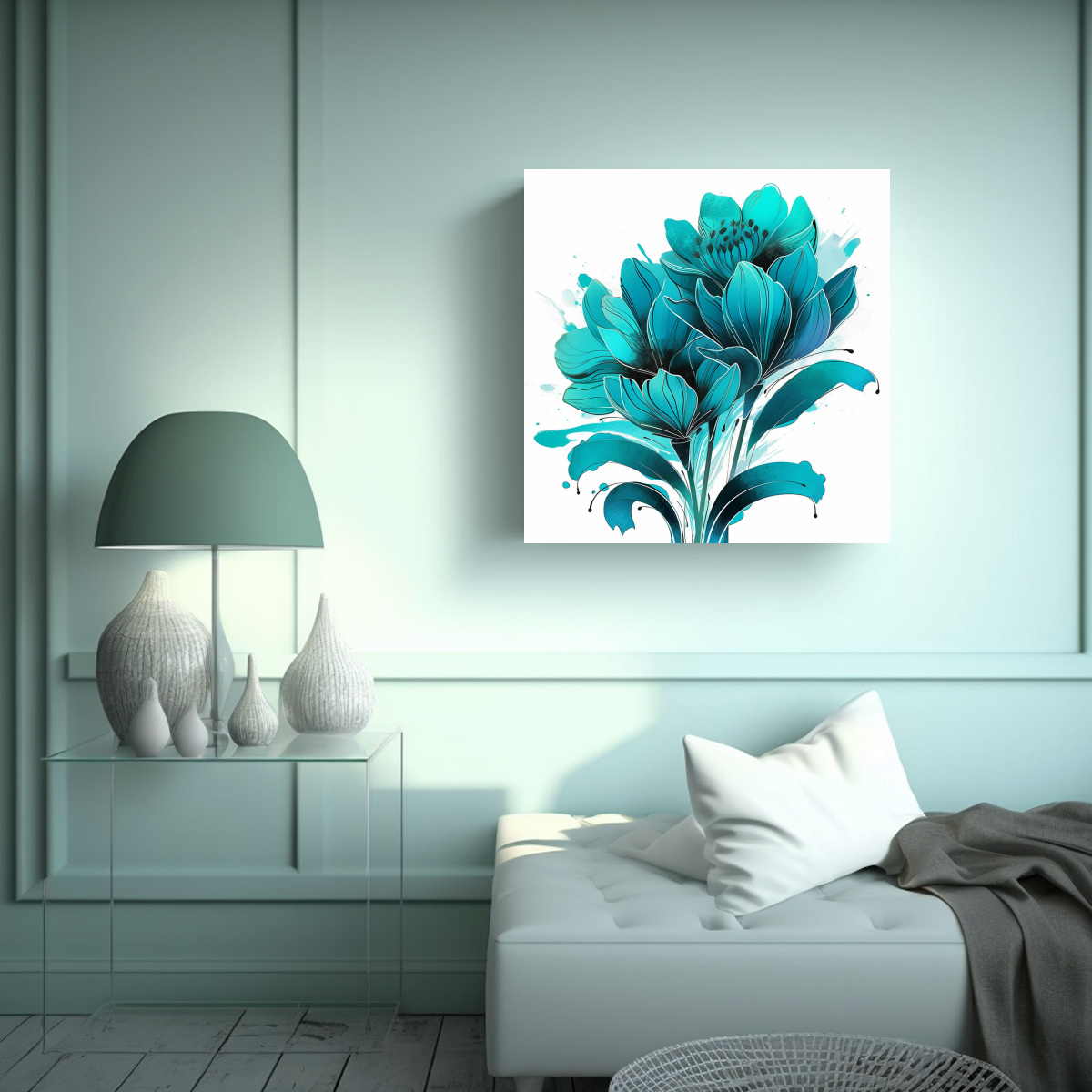Decora tu hogar con el lienzo hermoso y vitalidad de nuestro cuadro en tonos turquesa y atmósfera neonoir Diseño exclusivo y alta calidad Ideal para salas, dormitorios o espacios de relajación Aprovecha nuestra oferta y dale vida a tus paredes