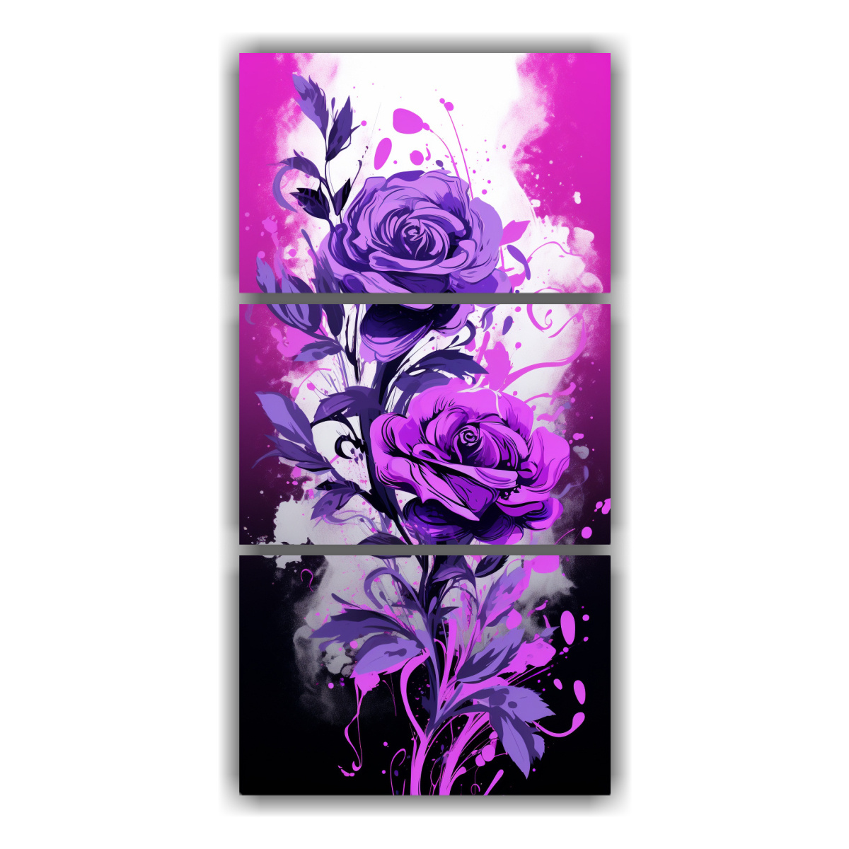 Descubre las composiciones movidas y la atmósfera neo-noir en estas obras vibrantes en lila, beige y negro Envíos rápidos y gratuitos en Santiago, ¡solo en DecoCuadros!