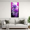 Este cuadro en tonos lila, negro y beige se vería espectacular en un salón moderno sobre un sofá gris, creando un contraste elegante y sofisticado Agrega cojines en tonos violeta y gris para completar la decoración