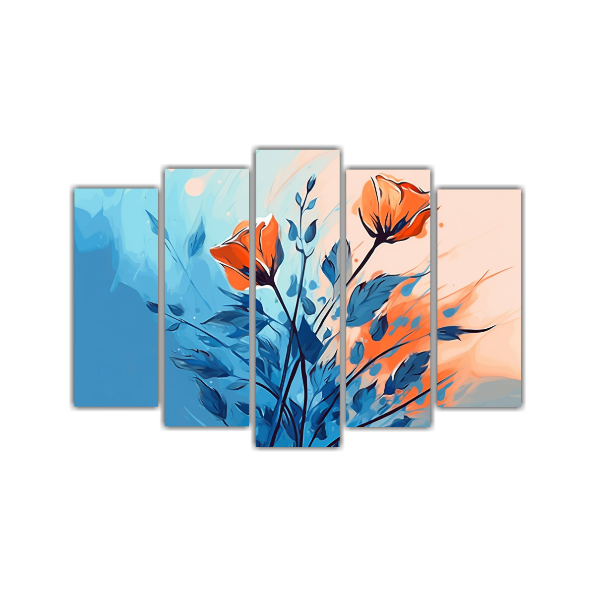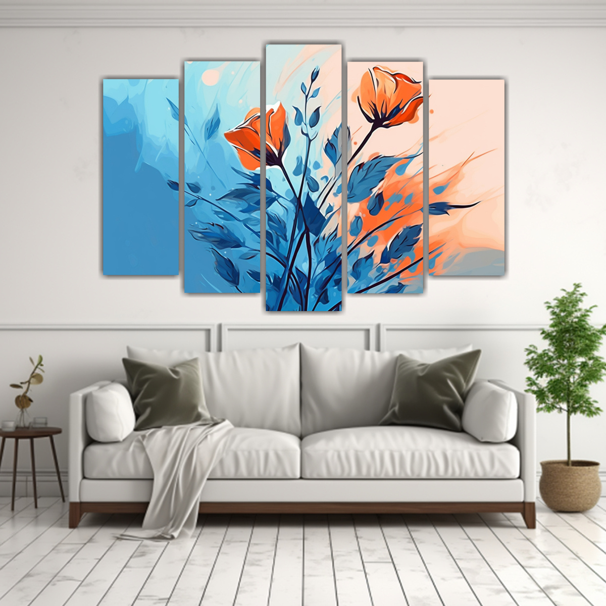 Sumérgete en una atmósfera neo-noir con este set de 5 lienzos decorativos Colores vibrantes como el naranja y azul se combinan con tonos como azul marino grisáceo, aguamarina y más Aprovecha la mejor calidad y precios accesibles de DecoCuadros