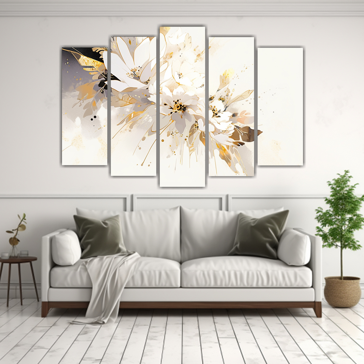 Pinturas Decorativas Estilo Neonoir En Blanco Y Dorado.