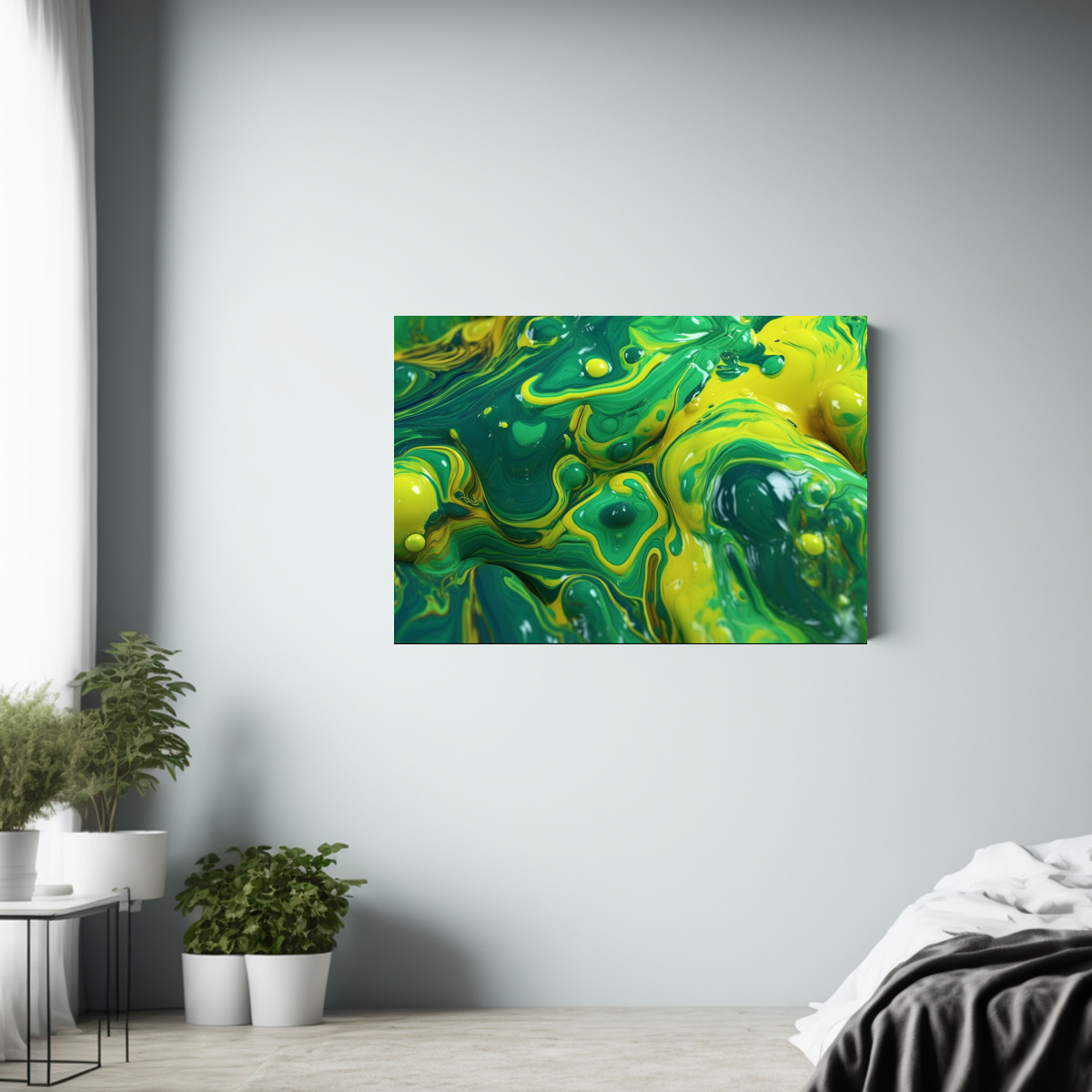 Renueva tu espacio con este cuadro de estilo psicodélico sobre lienzo verde líquido Perfecto para añadir un toque de modernidad y color a tu hogar Envío gratuito en Santiago y entrega express en regiones