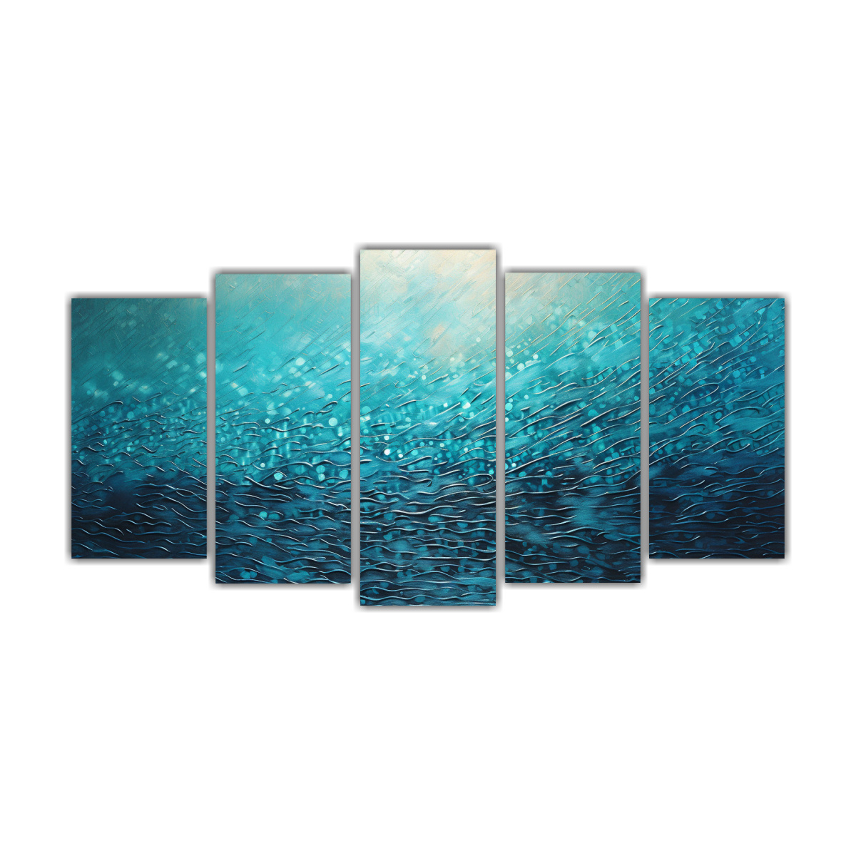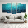 Una excelente idea para decorar con este cuadro es colocarlo en el salón principal de tu hogar, justo encima de un sofá de color neutro El contraste de los colores plateado, turquesa, azul marino grisaceo, menta, verde azulado y gris en la pintura luminosa de puntillismo resaltará la elegancia y sofisticación de tu sala de estar, creando un ambiente moderno y lleno de estilo