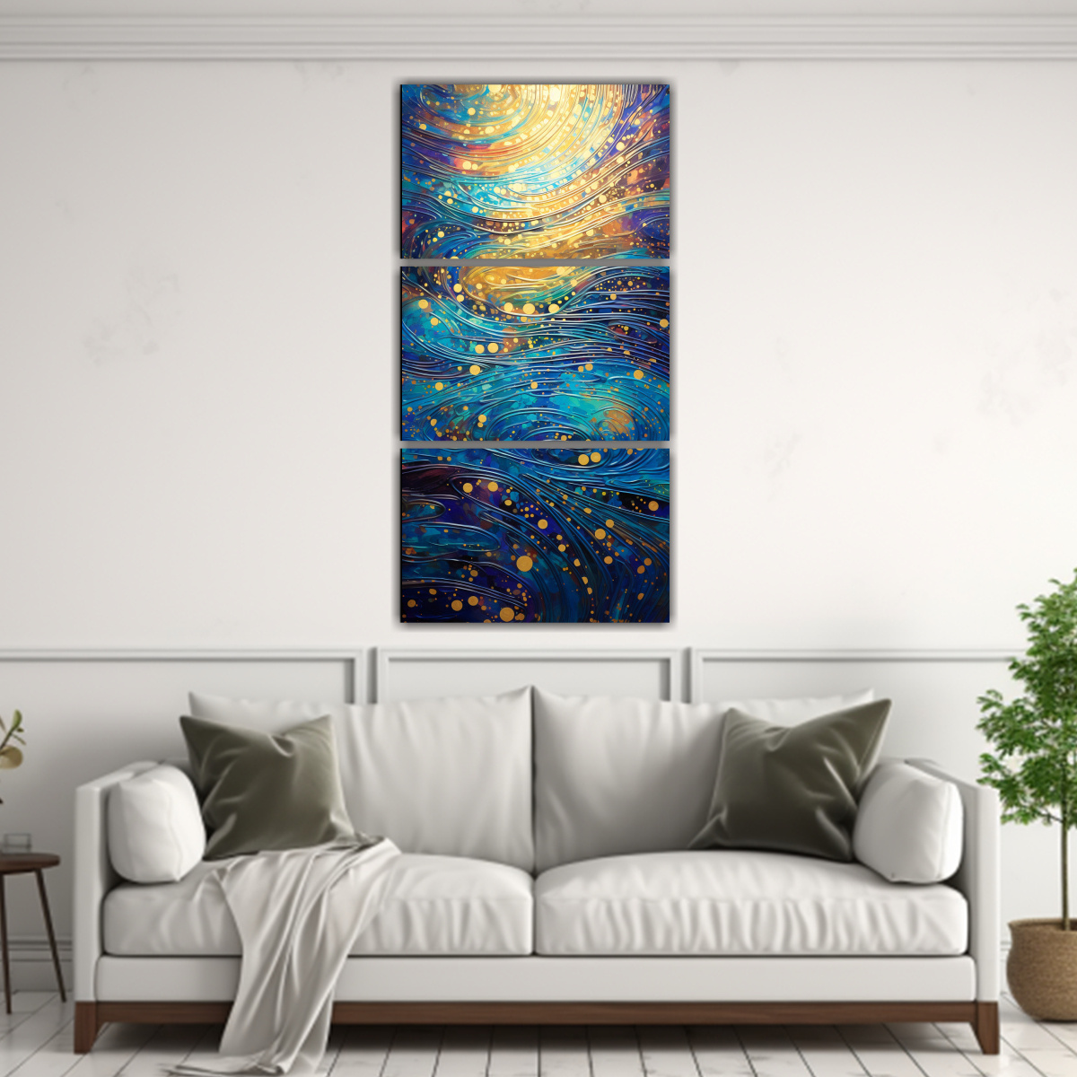 Este Set de 3 Cuadros de Pared Calma en puntillismo luminoso sería ideal para decorar un salón moderno o una oficina elegante Colócalos juntos en una pared blanca para resaltar su belleza y crear un ambiente de serenidad y sofisticación