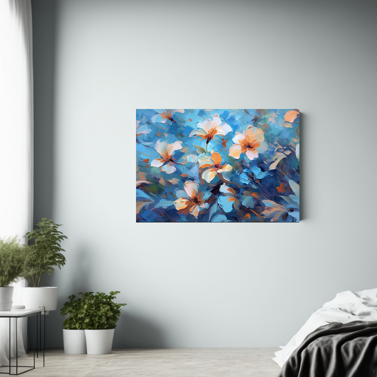 Este cuadro realismo onírico con patrón floral es ideal para colocar en el dormitorio, sobre una cómoda o en la pared cerca de la cama Combínalo con cojines en tonos turquesa y blancos para crear un ambiente armonioso y relajante ¡Dale un toque de elegancia a tu habitación con esta obra de arte!