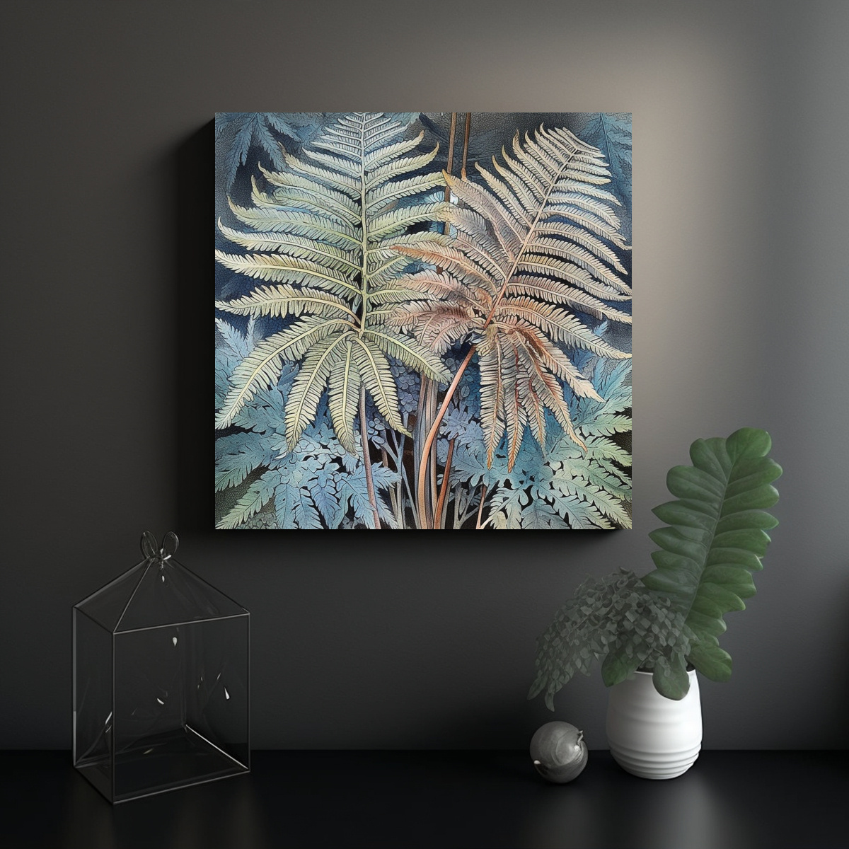Este cuadro es ideal para colocar en la sala de estar, combinando perfectamente con muebles de tonos neutros para resaltar su elegancia También puede ser el centro de atención en el dormitorio, creando un ambiente relajante y sofisticado ¡Dale un toque de distinción a tu hogar con este cuadro exclusivo de Cyathea spinulosa y Cyathea taiwaniana!