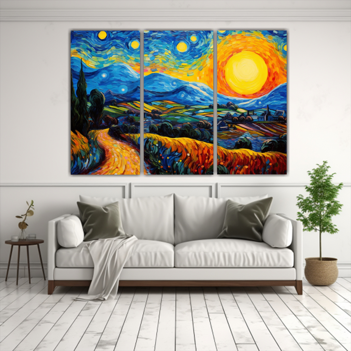 Este cuadro ‘Pinturas decorativas estilo Vincent van Gogh para cuarto colorido’ sería ideal para colocar en el salón principal de tu hogar, combinando perfectamente con muebles en tonos neutros para resaltar su vibrante paleta de colores