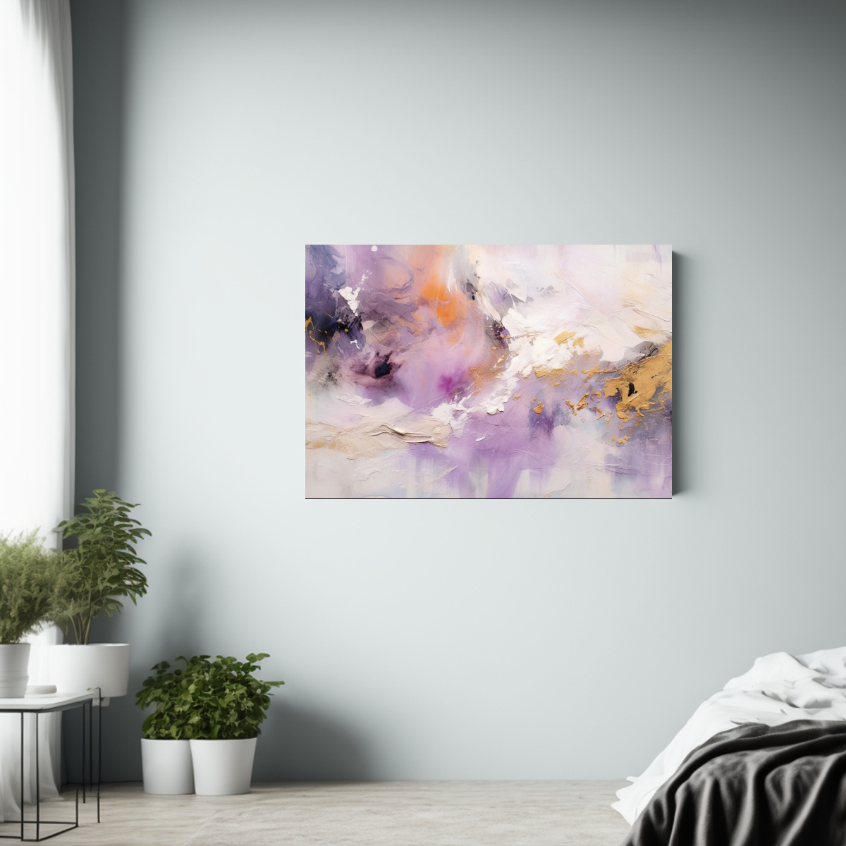 Este cuadro con pinceladas gruesas y colores vibrantes sería perfecto para decorar tu sala de estar sobre un sofá de tonos neutros, creando un contraste elegante y moderno en tu espacio ¡Atrévete a darle un toque de arte a tu hogar con este diseño exclusivo!