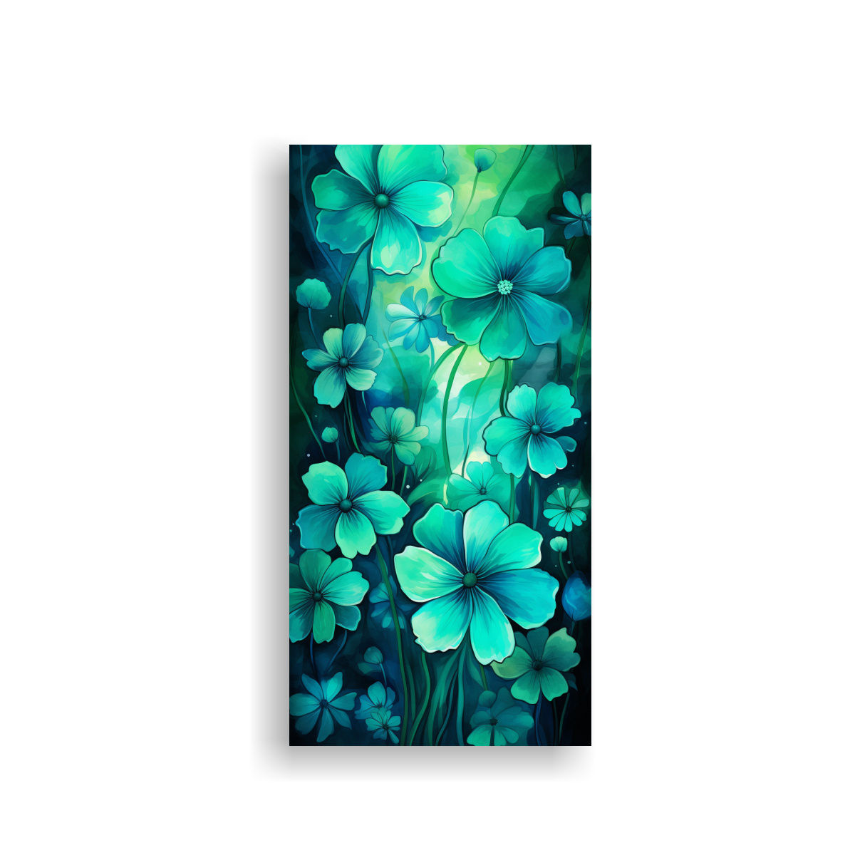 Pinturas Decorativas Exuberantes En Verde Y Turquesa Con Una Atmósfera Neonoir En El Estilo De Arte Vanguardia