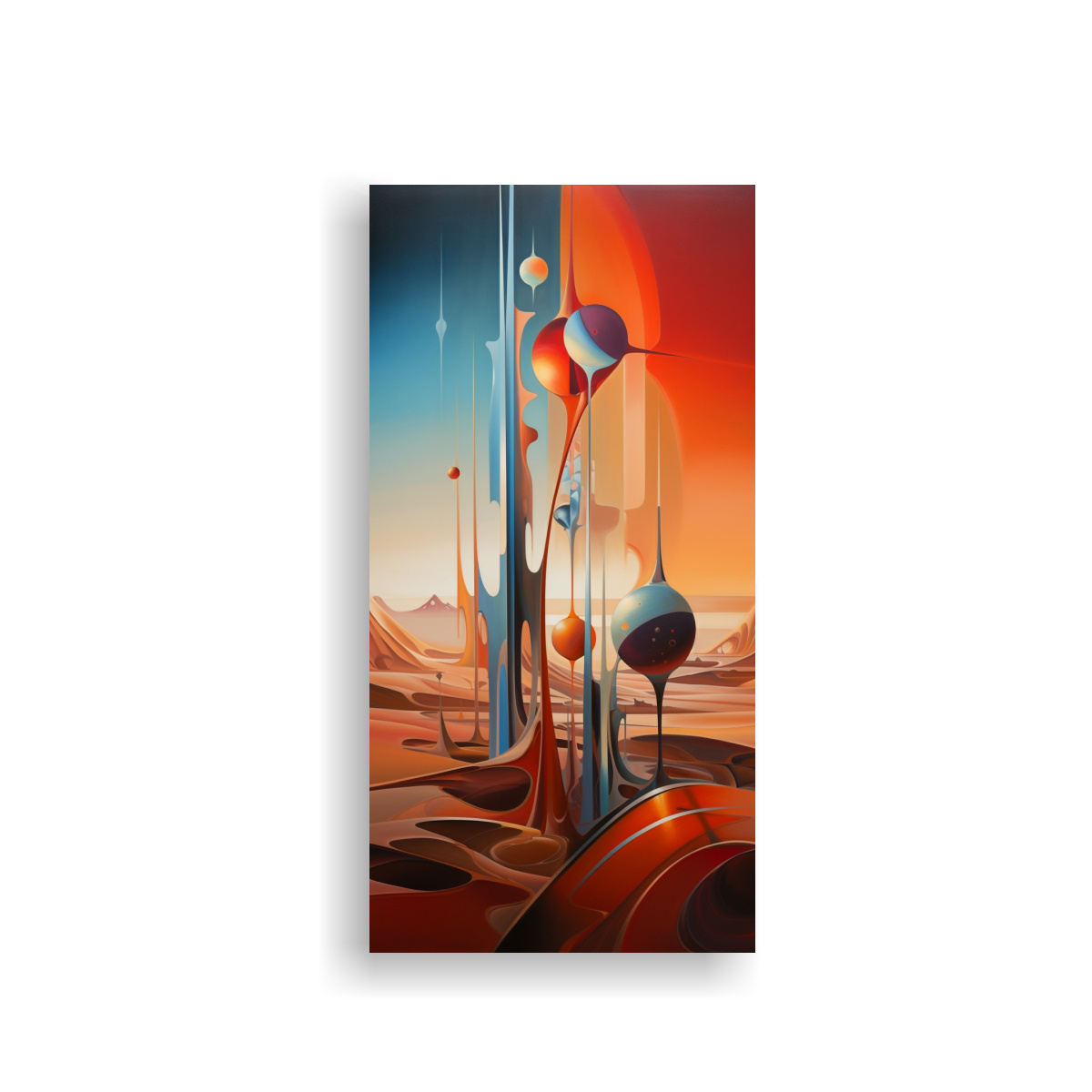 DecoCuadros ofrece cuadros decorativos impresos en tela de alta calidad con bastidores de madera Descubre nuestras pinturas decorativas abstractas con formas únicas y vibraciones del desierto en tonos azul marino grisáceo, coral, plateado, carmesí, gris y menta