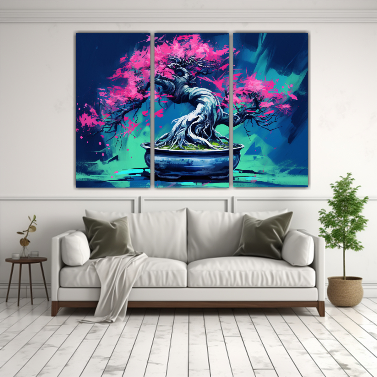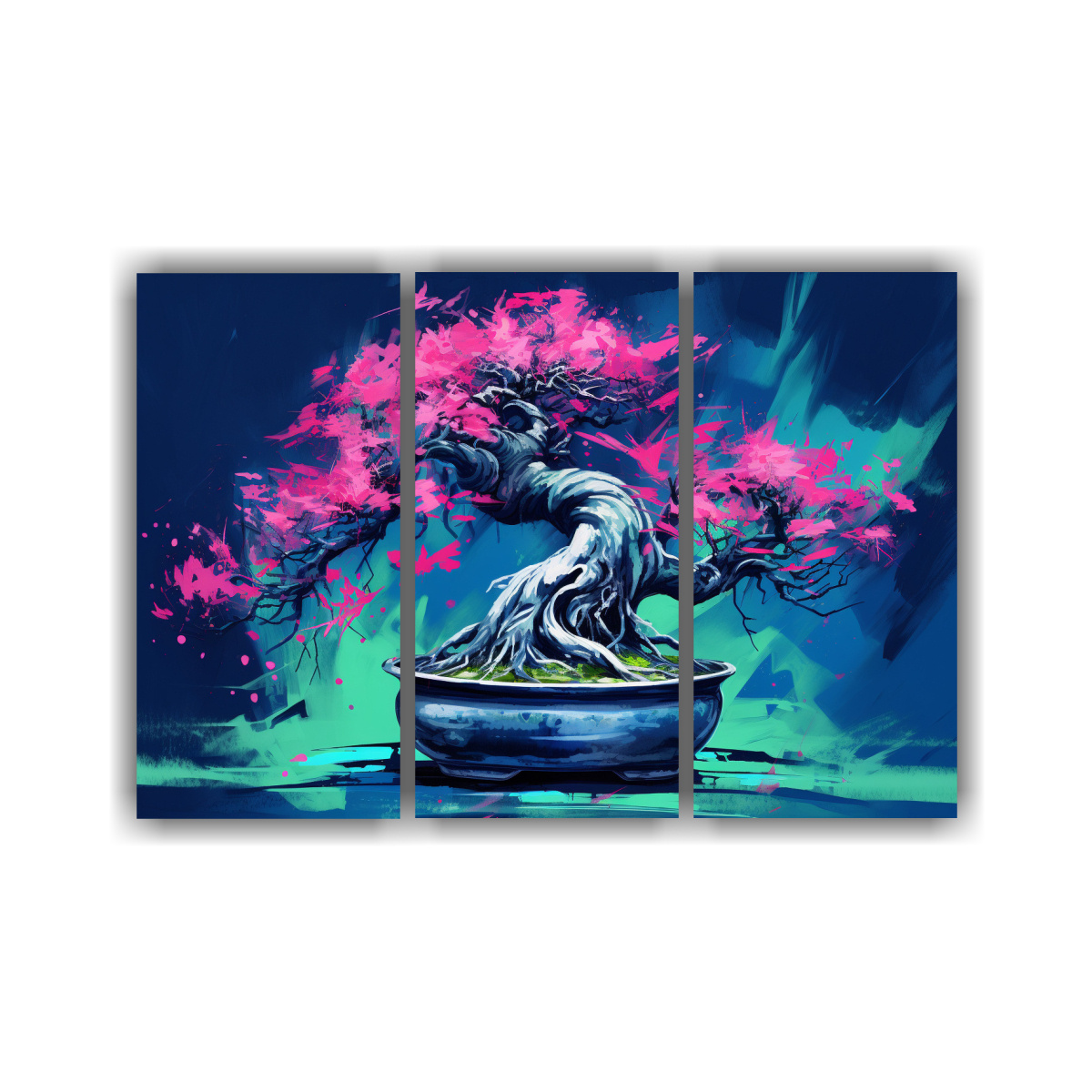 Pinturas Decorativas: Fucsia Bonsái En Verde Y Azul Composición Equilibrada