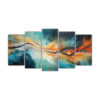 Pinturas Decorativas: Fusión Abstracta De Art Nouveau Y Tonos Oceánicos En 5 Telas En Bastidor De Inspiración Ambiente.