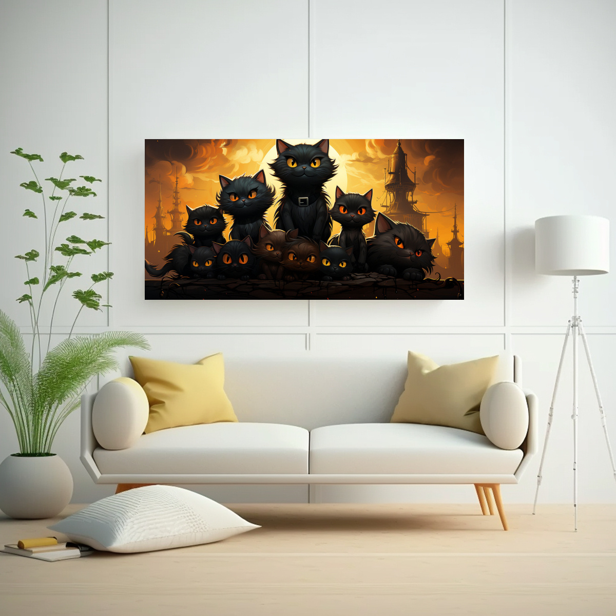 Pinturas Decorativas: Gatos Negros En Equilibrio Sobre Pila.