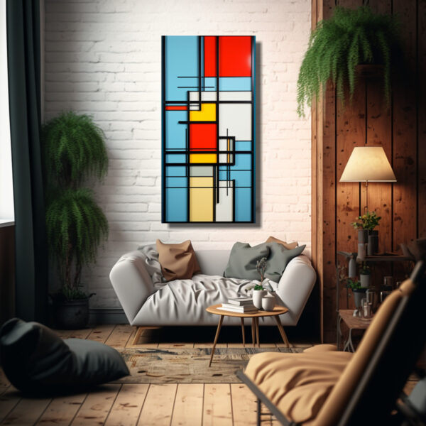Este cuadro multicolor sería perfecto para decorar un dormitorio o sala de estar minimalista Combínalo con muebles en tonos neutros como blanco o gris para crear un ambiente tranquilo y sereno