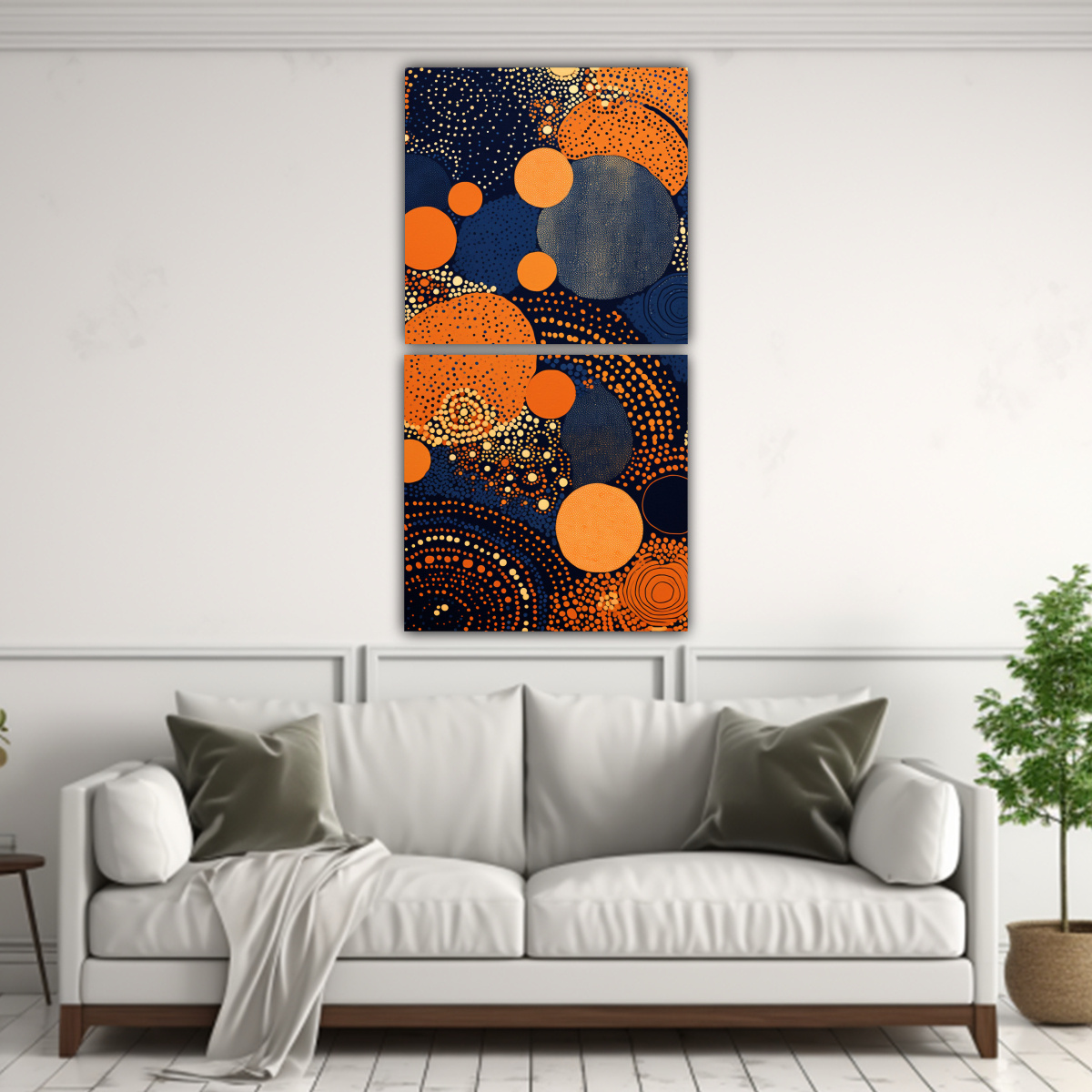 Este cuadro geométrico en papel tapiz naranja y azul es perfecto para decorar tu sala de estar Colócalo sobre un sofá en tonos neutros para crear un contraste llamativo y moderno Además, puedes complementar la decoración con cojines en los colores presentes en el cuadro, como el coral, el amarillo claro o el dorado ¡Atrévete a darle un toque de originalidad a tu espacio con este cuadro exclusivo de DecoCuadros!