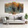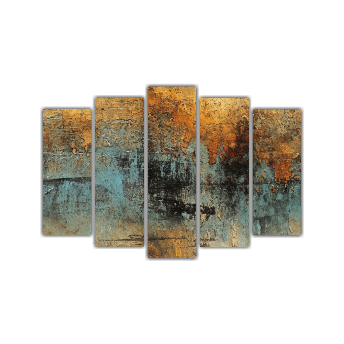 Pinturas Decorativas Grunge Con Toques Dorados: Set De 5 Cuadros Tonos Textura.