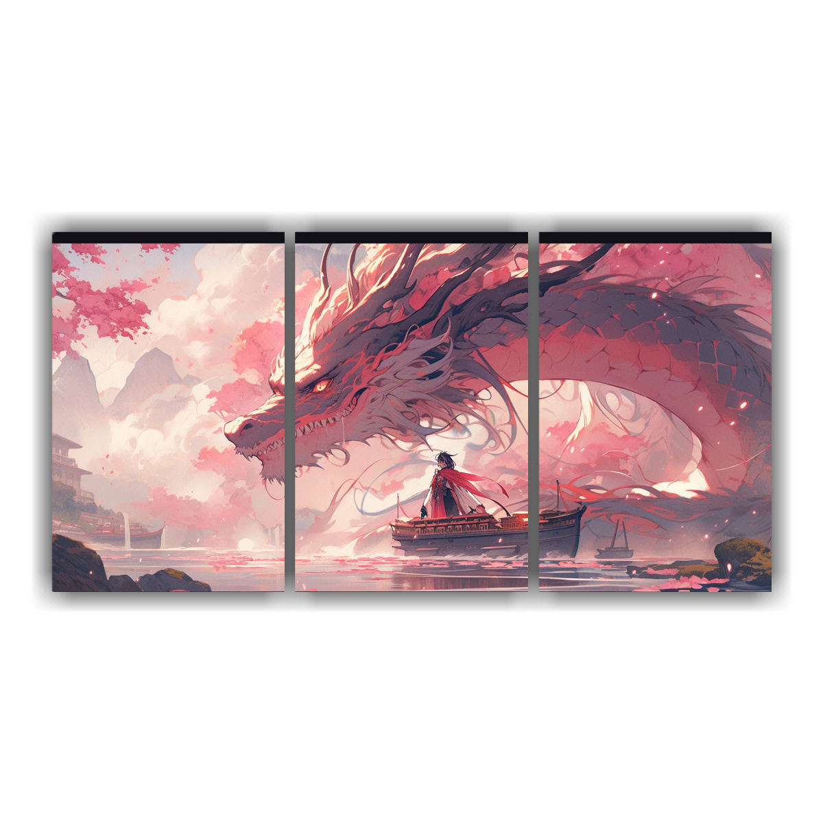 Pinturas Decorativas Horizontales Con Dragón Rosa En Estilo Neonoir Pop Art