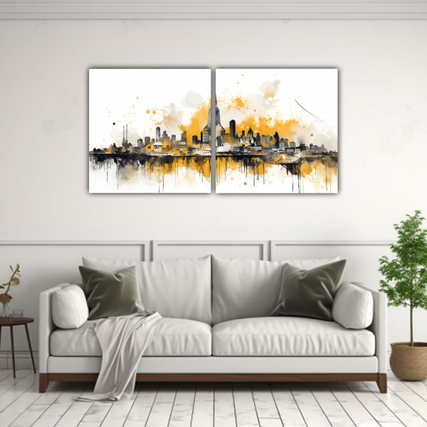 Pinturas Decorativas Horizontales Surrealistas En Blanco Y Dorado En Santiago, Chile.
