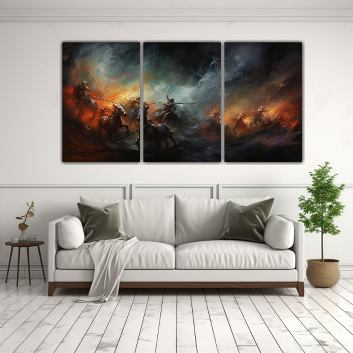 DecoCuadros ofrece pinturas decorativas de tres composiciones abstractas que retratan un antiguo mito batológico Con colores como el azul marino grisaceo, gris, dorado, carmesí y plateado, nuestros cuadros impresos en tela de alta calidad con bastidores de madera son una opción perfecta para decorar tu hogar Ofrecemos la mejor calidad del mercado y los precios más económicos, con diseños exclusivos y entregas rápidas y gratuitas en Santiago Enviamos a todas las regiones con envíos exprés