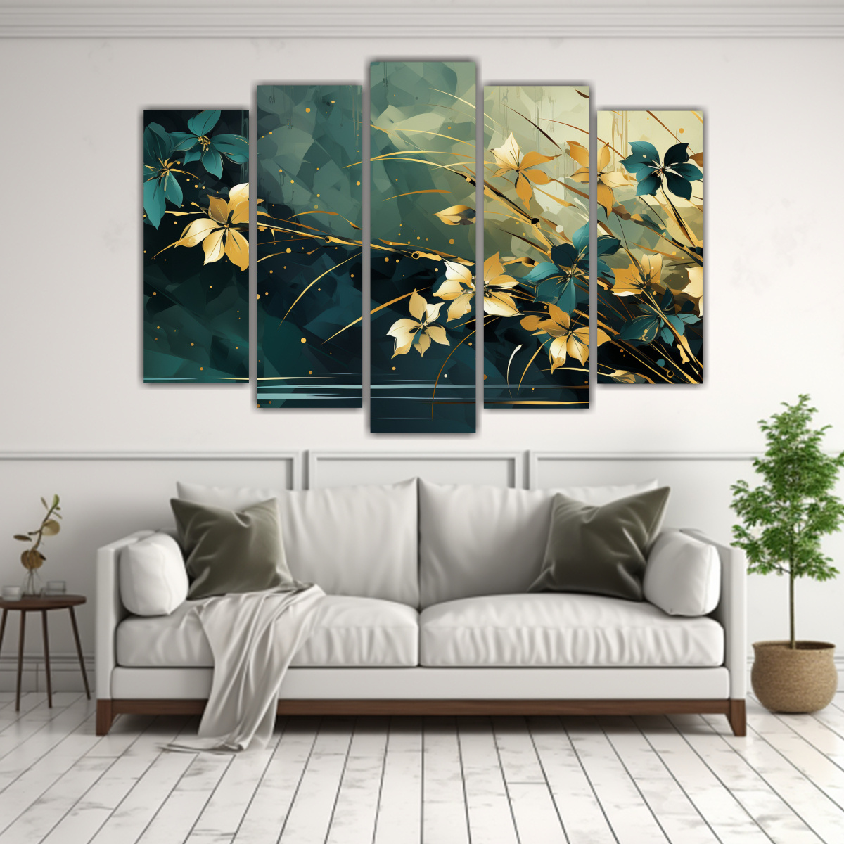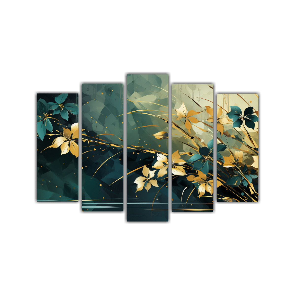 Cinco Canvas Espectacular Innovador A Bamboo Leaves in Green AND Gold Colors Neo-noir atmosph Plateado, Azul Marino grisaceo, Gris, Mostaza, Chocolate Envío gratis en Santiago y express a regiones