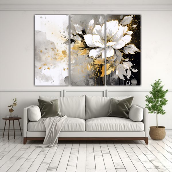 Pinturas Decorativas Inspiradas En Blanco Y Oro Con Atmósfera Neonoir.
