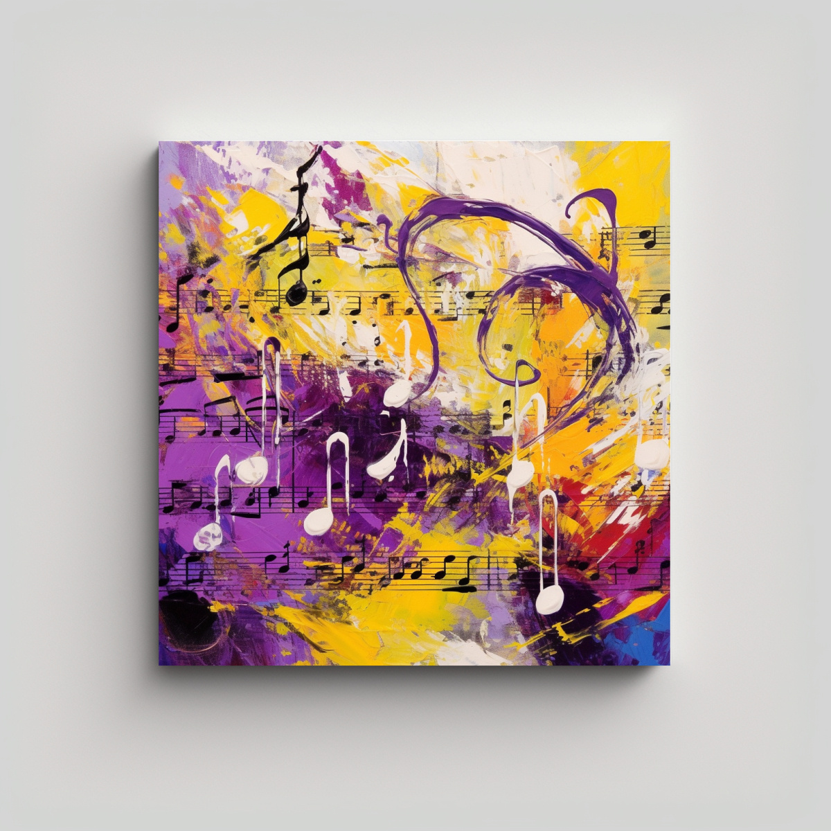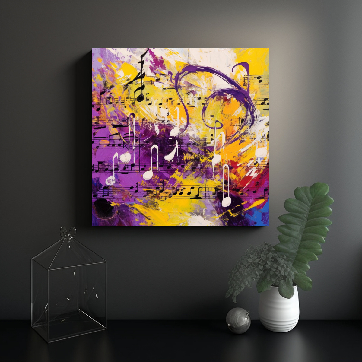 Este cuadro decorativo inspirado en la energía musical sería ideal para colocar en una sala de estar moderna junto a muebles en tonos neutros y detalles dorados Aportará dinamismo y estilo a tu espacio, convirtiéndose en el centro de atención
