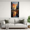 Coloca este cuadro en tu sala de estar para agregar un toque moderno y sofisticado Combina perfectamente con muebles de colores neutros como gris o blanco, y agrega cojines en tonos coral o carmesí para resaltar aún más los colores llamativos del cuadro ¡Será el centro de atención de tu sala!