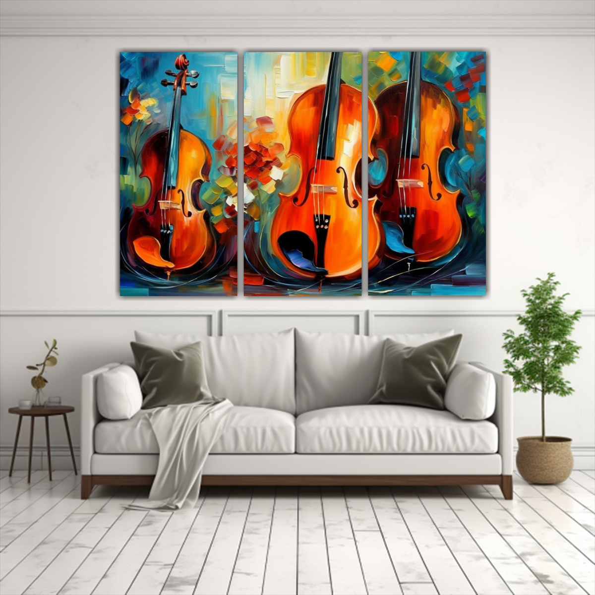 Elige una pieza musical que te inspire y déjate llevar por la creatividad de nuestros tres cuadros Con la mejor calidad del mercado, te ofrecemos diseños exclusivos que darán un toque único a tu hogar ¡Decora con estilo y personalidad!